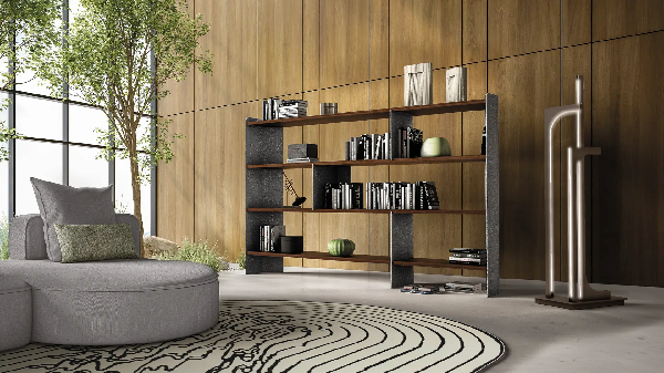 Carter biblioteka, pokazuje dizajn koji kombinuje industrijski izgled sa elegantnijim i prefinjenijim, dodatak za nameštaj savršen je i za dom i za kancelariju. Struktura je predložena u metalu. Police su dostupne u furniru od eukaliptusa ili zebrano drveta. Za tehničke crteže, pogledajte priložene fotografije.