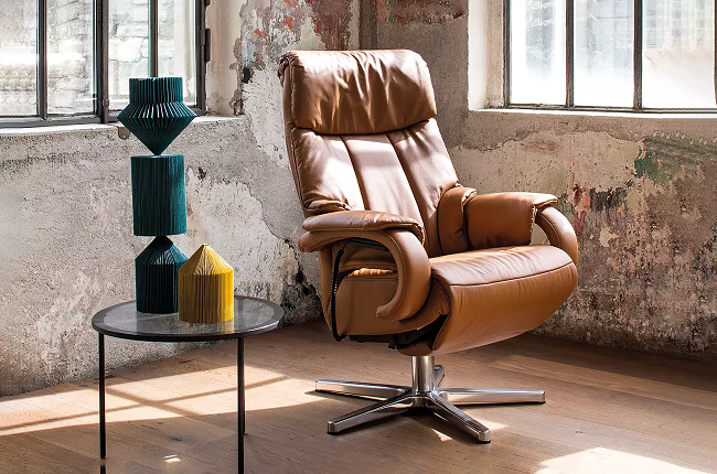 Ležaljka sa integrisanim naslonom za noge i podesivim naslonom.U 3 veličine (S/M/L) i 2 širine.7 osnovnih okvira: zvezdasta baza, drveni okretni prsten ili osnovna ploča (metalna, drvena, pokrivena).Podešavanje ugla nagiba naslona za glavu.Tapacirani nasloni za ruke.Okretanje za 360°.