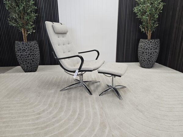 Life okretna fotelja ima izuzetnuudobnost sedenja i elegantan, minimalistički dizajn. I u verzijama od tkanine i u kožnim verzijama, Naslon Life rotirajuće fotelje ima stilsko prošivanje. Naslon za glavu je uvek tapaciran izabranom tkaninom i bojom. Elegantno hrastovo drvo, u kontrastu sa modernim hromiranim ili mat satenskim metalom, ističe sofisticirani dizajn Nilsa Gamelgarda. Za dodatnu udobnost, dostupan je opcioni tabure za noge u dizajnu koji dopunjuje rotirajuću stolicu (ako se izabere zvezdasta osnova, tabure će imati osnovu u obliku slova X u odgovarajućem materijalu i boji). Uprkos čistom, modernom dizajnu, detalji su ono što fotelju Life čini zaista posebnom. To uključuje prošivene detalje na naslonu i sedištu, kao i prepoznatljivo oblikovane naslone za ruke. Sve u svemu, Life je sve samo ne bezizražajna; umesto toga, impresionira svojim elegantnim izgledom i udobnošću. Funkcija naslona je takođe dostupna kao opcija za udobno opuštanje.