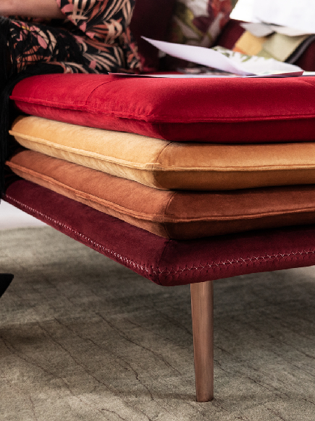 Model Mater Familias je takođe dostupan kao podnožje i nudi pravougaone i okrugle oblike, kao i verzije na klupi. U poređenju sa malom veličinom taburea, klupa je duža i plića verzija koja se može koristiti kao klupa u dnevnim prostorijama ili kao podloga za spavanje. Karakterišu ih tipična slojevita sedišta, ovi proizvodi su dizajnirani da stvore nove konfiguracije koje stvaraju prostor koji prevazilazi funkcionalne podele prostorija, pretvarajući ih u jedinstvenu dimenziju u kojoj se može živeti udobno iskustvo napravljeno od udobnog druženja.