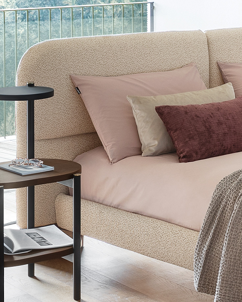 Kilijan round je krevet snažnog izgleda koji karakterišu drvene noge koje se, produžavajući se da podupru uzglavlje, čine ga idealnim čak i za postavljanje u sredini sobe ili udaljeno od zida. Uzglavlje sa vertikalnim šavom dostupno je u dve varijante, kompaktnijoj i široj koja prima noćni stočić.