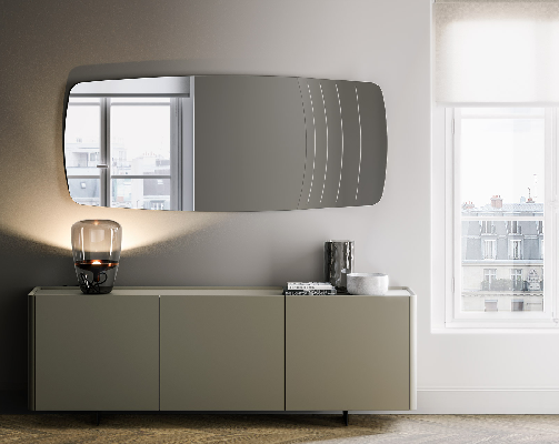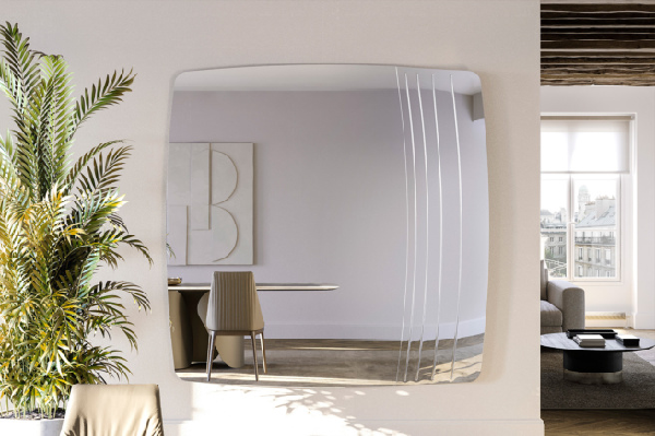Kirtyje dizajnersko ogledalo jedinstvenih i neobičnih oblika, idealno rešenje za davanje osećaja dubine i širine okruženju. Dominantni dizajn Kirti ogledala osvojiće vas svojim scenografskim i funkcionalnim krivinama. Karakterističan oblik je stvoren zakrivljenošću veoma tankog lista ručno posrebrenog kristala i naglašen je dragocenim i važnim gravurama na poleđini. Pogodno za velike ambijente sa modernim i savremenim stilom.