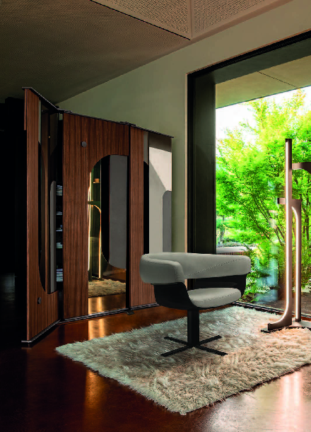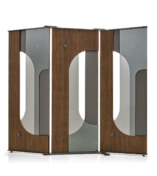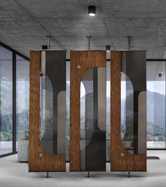 Kada delimo svoje enterijere, svesno se trudimo da unesemo nešto dinamično u prostoriju, u način na koji živimo i način na koji odgovaramo na izazove sa kojima se naši enterijeri suočavaju. U suštini, fizička pregrada, poput „Sakrij me“, predstavlja način na koji i mi biramo da živimo svoje živote. Biramo da se krećemo iz jednog prostora u drugi kako bismo bolje upravljali svakom stvari u odvojenosti.I to je ono što je Đino Karolo uspeo da uradi. U „Sakrij me“ stvorio je dva različita tipa odvajanja, jedan od poda, a drugi od plafona. Svaki panel je kombinacija više materijala: zebrano ili eukaliptusovo drvo, ogledalo, lakirano drvo i metalni umeci. Čineći ovaj očigledan kontrast, ovo očigledno odvajanje je tako detaljno, a opet tako odmereno, da odražava naše sopstvene unutrašnje potrebe i unutrašnja priznanja.