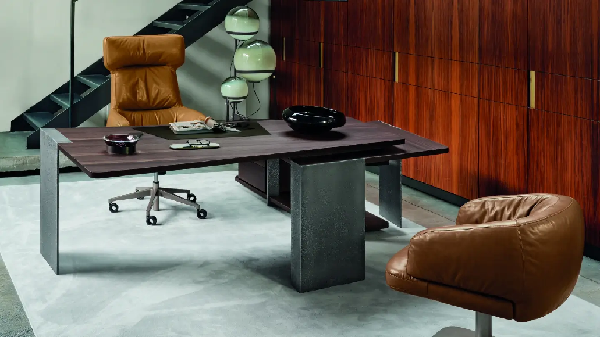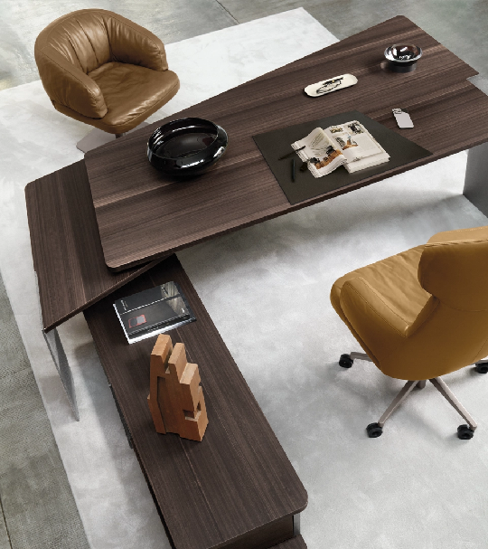 Radni sto pokazuje jedinstven, umetnički i savremen dizajn, idealan komad nameštaja koji će svaki ambijent učiniti modernim i neponovljivim. Gornja ploča je napravljena od drveta. Struktura je dostupna u različitim metalnim završnim obradama. Proizvod je podeljen na gornji sto i zasebnu donju konzolu sa fiokama.