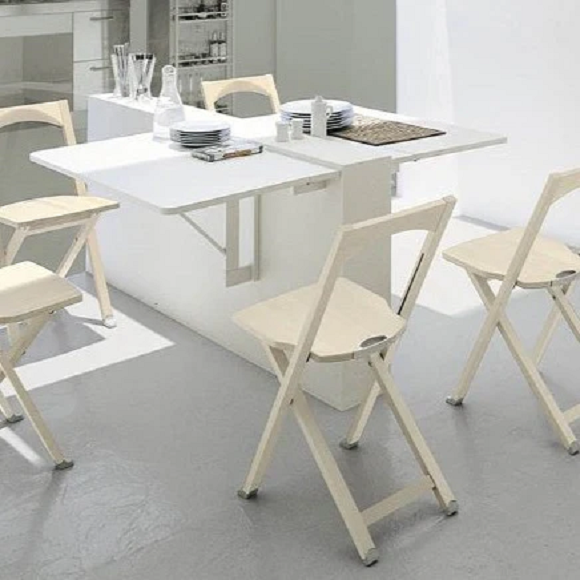 Quadro sto za montažu na zid. Pravougaona ploča stola koja se sklapa po potrebi. Quadro je drveni sto koji se može montirati na zid na željenoj visini pomoću posebnih nosećih vijaka. Svestrana i funkcionalna, pravougaona ploča stola može se koristiti kao radna površina ili za brzi ručak. Kada je sklopljena, zauzima prostora koliko i polica.Sklopivi sto omogućava optimalnu organizaciju prostora, savršen je za malu kuhinju ili studio stan. Ima sklopivu policu od lima sa vertikalnim ojačanjima koja se pričvršćuje na vrh sklopivog stola.