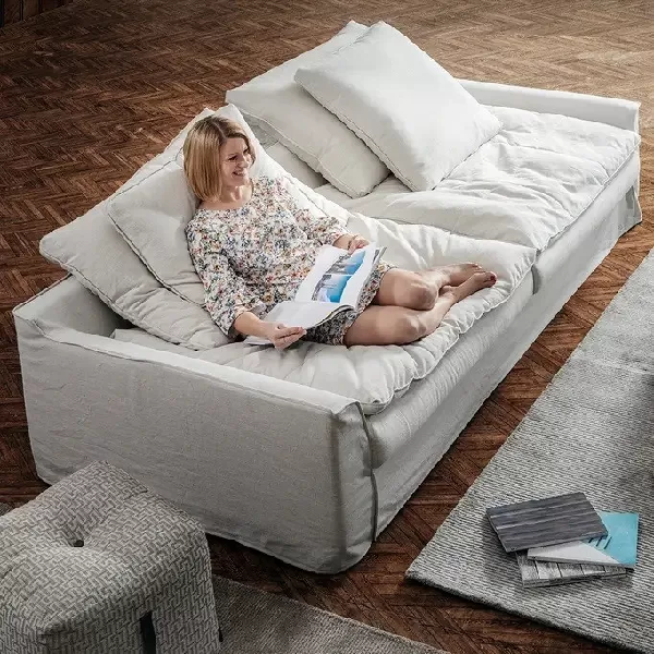 Kibo ima moderan rustikalni izgled prirodnog stila. Sa svojim mekanim pokrivačem i fantastičnom udobnošću u duplom jastuku sedišta, Kibo je mesto za opuštanje i izgleda posebno zapanjujuće u pamučnim/lanenim tkaninama.Sofa Kibo je sinonim za udobnost. Njena uklonjiva,labava presvlaka i dosta mekih jastuka za leđa obezbeđuju udobnost u svakom položaju-može se utonuti u nju,ispružiti noge ili čak udobno leći.Kolekcija uključuje fotelje i garniture različitih veličina.