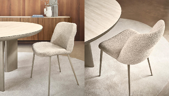 Stolica Onda je dobila ime po jedinstvenoj konturi sedišta, čije vijugave linije evociraju kretanje mora nalik talasima. Njene meke proporcije dopunjuju vitke, metalne noge.