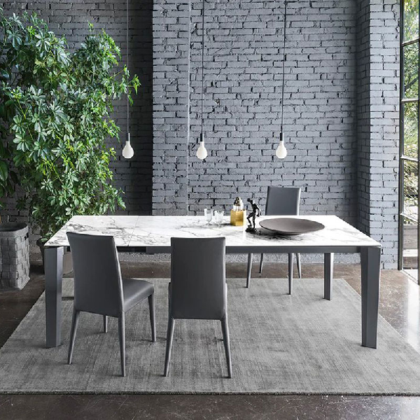 Rasklopivi sto ALFA je savršeno usklađen sa idejom pametnih, elegantnih i raznovrsnih proizvoda koji zadovoljavaju sve uobičajene „varijable“ živog doma i čine svakodnevni život jednostavnijim i prijatnijim. Njegov dizajn je raznovrstan zahvaljujući kombinaciji drvenih nogu i izboru između više keramičkih ploča. Blago sužene višestrane spoljne noge obezbeđuju maksimalnu udobnost za goste koji sede za stolom. Produžeci su montirani na okvir sa vođenim otvaranjem.