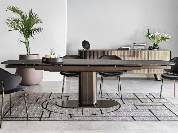 CAMEO je sto sa oštro definisanom ovalnom siluetom koja mu daje moćnu ličnost i ne samo da pruža stabilnost, već omogućava da se prostor ispod vrha maksimalno iskoristi. Napravljen od obloženog metala, centralni stub podržava različite tipove vrhova; kombinacija metala i drveta je uvek rafinirana, dok mešavina metala i keramike sa efektom mermera stvara razigrani kontrast između hladnih i toplih materijala i veoma je moderna.