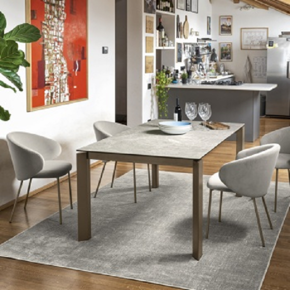 SIGMA sto na razvlačenje: drveni okvir i noge. Pravougaona ploča od drveta ili kaljenog stakla. SIGMA sto ima genijalni mehanizam koji proširuje ploču stola. Povlačenjem okvira prema sebi, dve noge, opremljene skrivenim točkovima, pomeraju se na jednu stranu, omogućavajući izvlačenje produžnog dela. Jednostavnim okretanjem, produžni deo, postavljen na metalne šine, izvlači se iz svog kućišta i poravnava se sa pločom stola. Pravougaone noge ostaju na uglovima, obezbeđujući maksimalnu udobnost za sve goste. SIGMA je sto na razvlačenje, savršen za opremanje trpezarije. Konfigurišite ga u verziji koju želite.