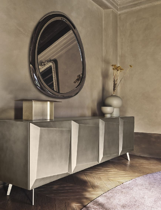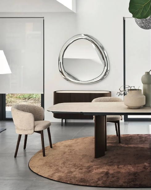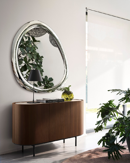 Aura je ogledalo nepravilnog oblika čija estetika daje smelost ramu, stvarajući igru svetlosti i refleksija. Dostupno u dve završne obrade, Aura je idealno za postavljanje iznad komode, u dnevnim boravcima, hodnicima, kao i u tranzitnim zonama.