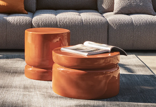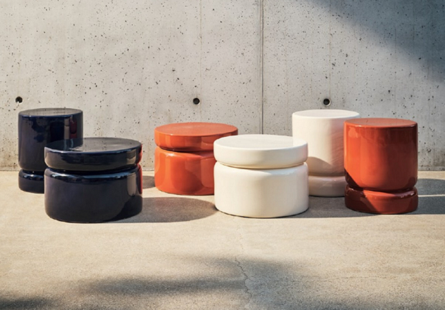 Mali sto čiji cilindrični oblik i horizontalni rez podsećaju na bambusovu trsku. Napravljen od glazirane keramike, ovaj komplementarni predmet zauzima neobičnu poziciju između funkcionalnog stočića za kafu i dodatka sa ručno izrađenim dodirom.