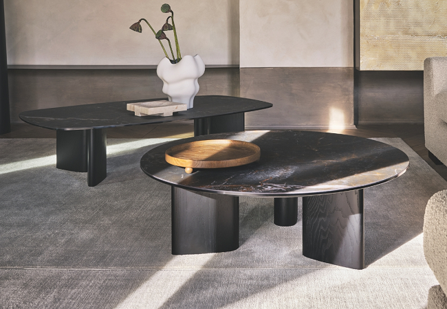 Sendijev širok asortiman takođe uključuje klub stočiće i konzolni sto, koji se i dalje odlikuju nogama u obliku suze, čiji kosi poprečni presek poprima upečatljivu trodimenzionalnu prirodu i daje mogućnost raznovrsnim oblicima - od klasičnog klub stočića, preko konzolnog stola sa dve noge, do malog stola sa centralnim stubom, idealnog za upotrebu pored sofe.