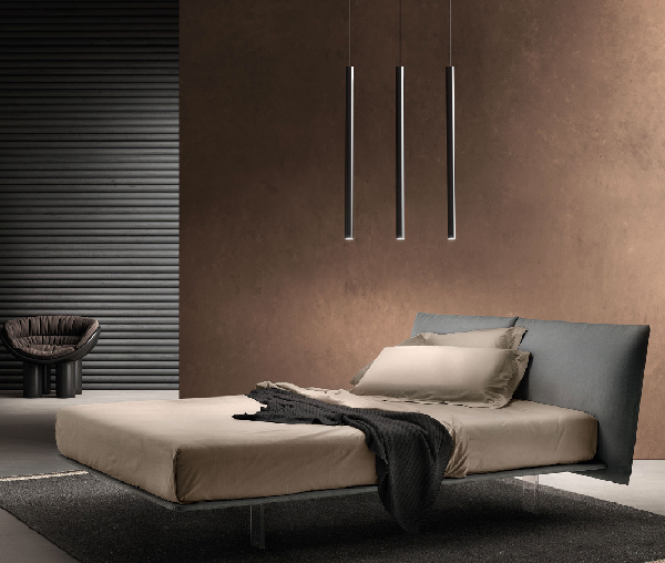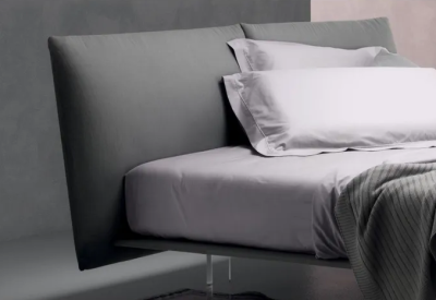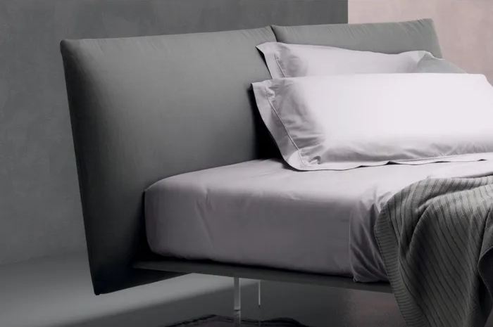 KREVET Curious ima lagan, viseći dizajn, naglašen providnim nogama i tankim okvirom kreveta.Čiste, minimalističke linije ističu veliko tapacirano uzglavlje sa dva udobna jastuka.
