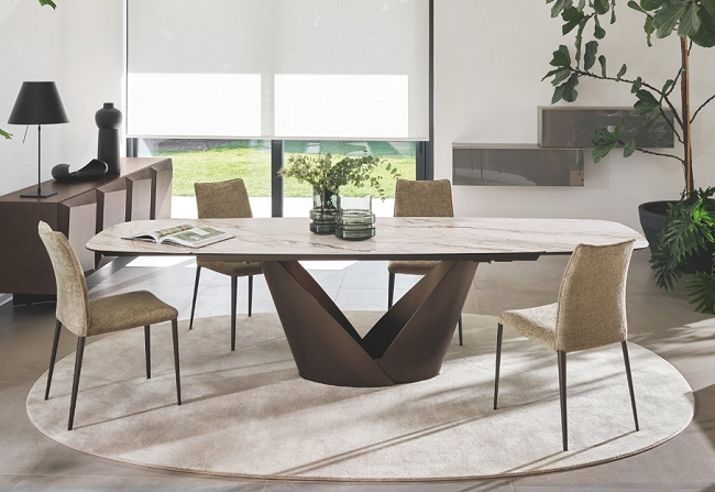 Dinamične linije, fleksibilan naslon i sedište sa elastičnim oprugama, Fej je trpezarijska stolica koja se može prilagoditi čak i najudobnijim položajima sedenja. Konusne metalne noge joj daju vitak profil, što je čini pogodnom za elegantno upotpunjavanje većih stolova.