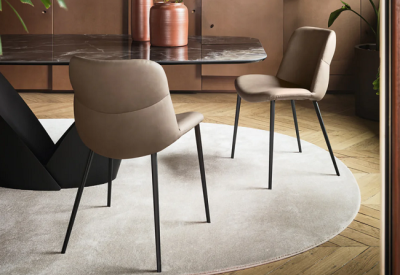 Stolica Onda je dobila ime po jedinstvenoj konturi sedišta, čije vijugave linije evociraju kretanje mora nalik talasima. Njene meke proporcije dopunjuju vitke, metalne noge.
