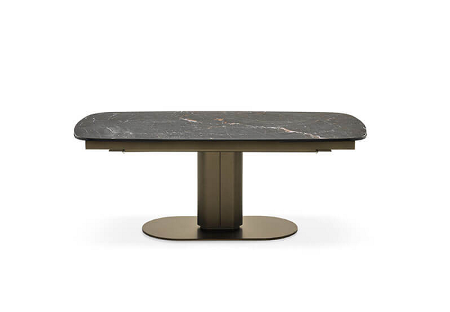 CAMEO je sto sa oštro definisanom ovalnom siluetom koja mu daje moćnu ličnost i ne samo da pruža stabilnost, već omogućava da se prostor ispod vrha maksimalno iskoristi. Napravljen od obloženog metala, centralni stub podržava različite tipove vrhova; kombinacija metala i drveta je uvek rafinirana, dok mešavina metala i keramike sa efektom mermera stvara razigrani kontrast između hladnih i toplih materijala i veoma je moderna.